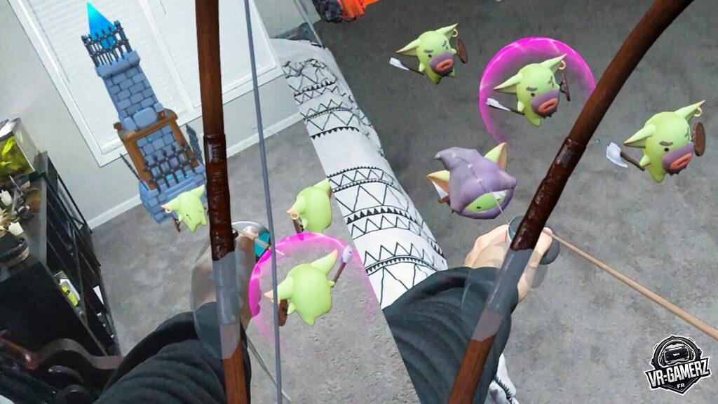 Placez un portail gobelin et une tour de cristal dans votre pièce. Utilisez un arc et des flèches pour repousser les vagues d’ennemis avant qu’ils ne détruisent votre base. Ce mode apporte une dimension plus dynamique, mêlant action et stratégie, où chaque décision peut influencer l’issue du combat.
