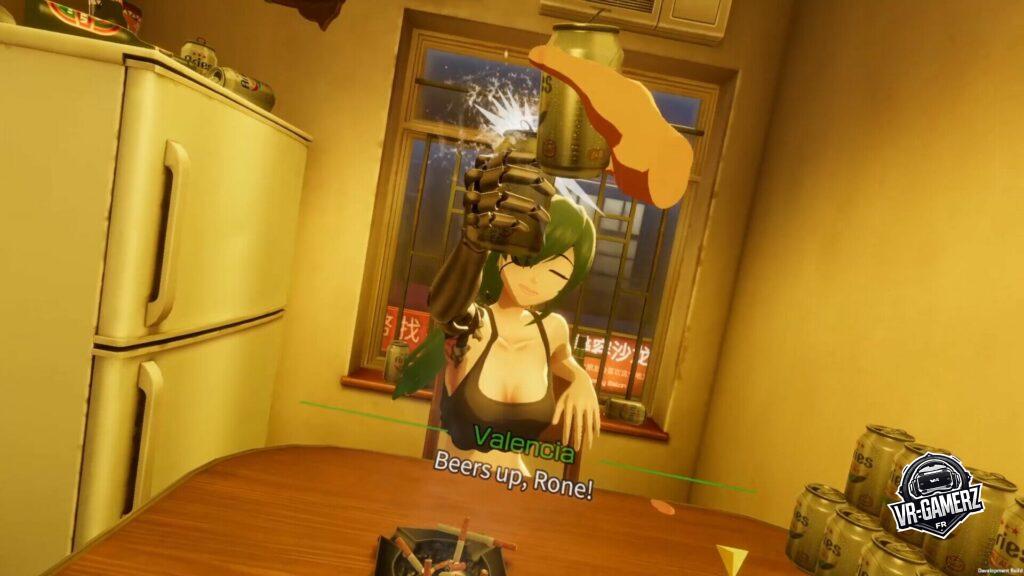 Project MIX se démarque par une approche lente et contemplative, pensée pour la VR. Ici, pas de rythme effréné : chaque moment compte. L’environnement est richement illustré à la main, avec des mécaniques de bar en réalité virtuelle qui privilégient le fun à la précision réaliste. Ce n’est pas un simulateur de travail, mais bien une aventure narrative ancrée dans un monde stylisé et vivant.