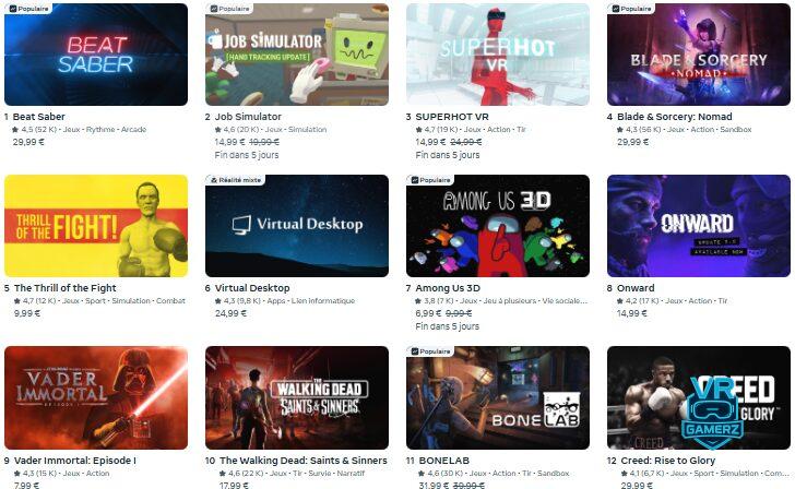 Les 50 jeux les plus vendus sur Meta Quest : la liste officielle